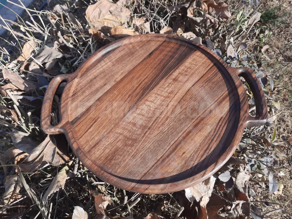 سینی کاربردی و شیک با طراحی گرد و جنس چوب طبیعی. مناسب سرو غذا، نوشیدنی یا دکور میز پذیرایی.